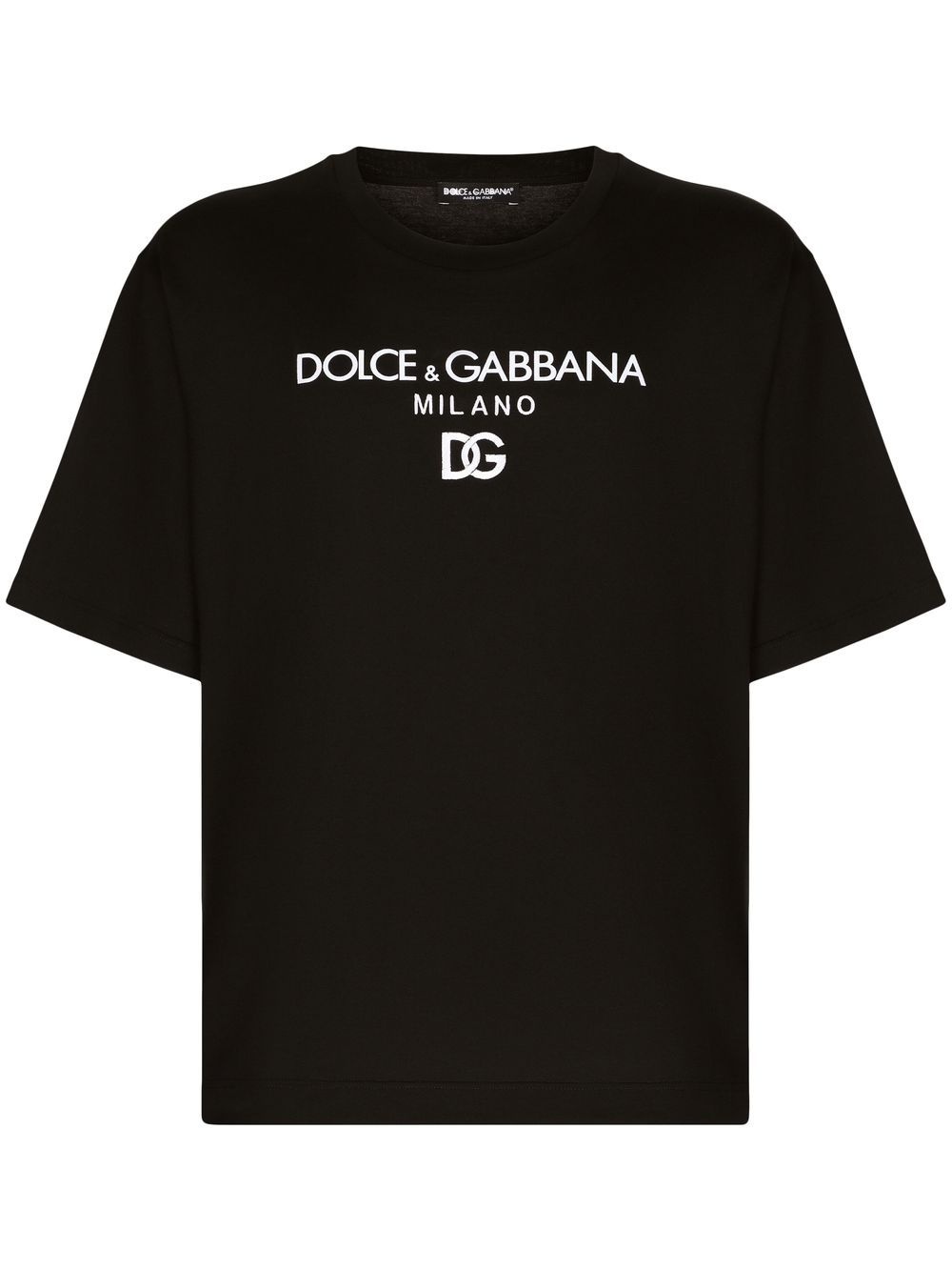 logo-embroidered cotton T-shirt Dolce & Gabbana updates the classic T-shirt for SS23. Crafted from cotton with a traditional crew-neck silhouette, it’s enhanced with contrasting white logo embroidery at the chest. Highlights - Black/white - Cotton - Embroidered logo to the front - Crew neck - Short sleeves - Straight hem Made in Italy Composition Cotton 100% Washing instructions Read Manufacturer Guidelines
