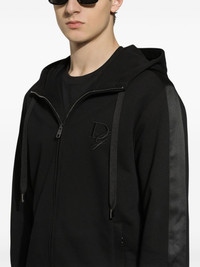 logo-embroidered hoodie Highlights - Black/grey - Cotton blend - Embroidered logo at the chest - Contrasting panel detail - Classic hood - Front zip fastening - Ribbed cuffs and hem Made in Italy Composition Cotton 88%, Polyester 11%, Spandex/Elastane 1% Washing instructions Read Manufacturer Guidelines