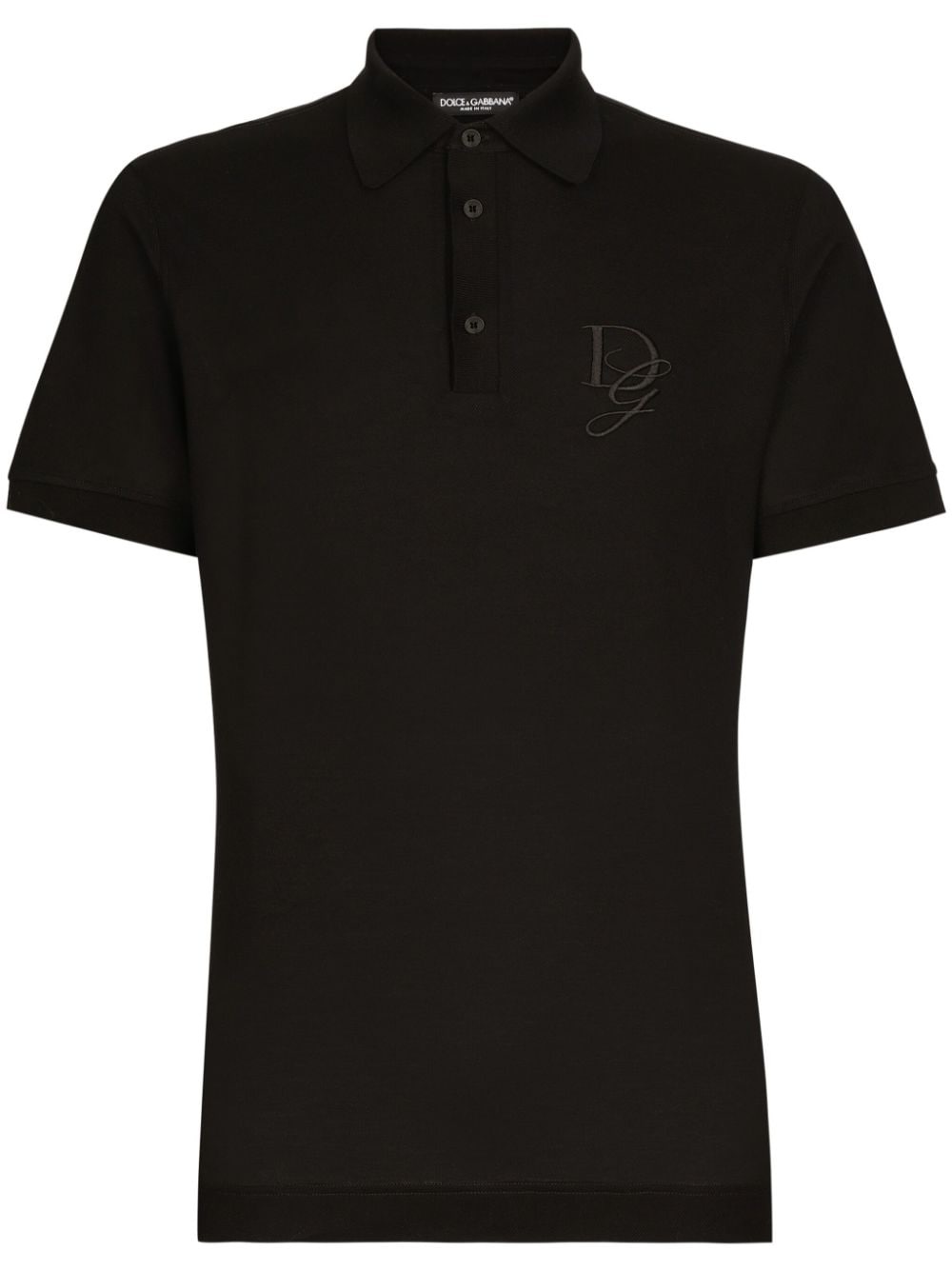 logo-embroidered jersey polo shirt Highlights - Black - Cotton - Jersey texture - Embroidered logo at the chest - Front button placket - Polo collar - Short sleeves - Ribbed cuffs - Straight hem Made in Italy Composition Cotton 100%