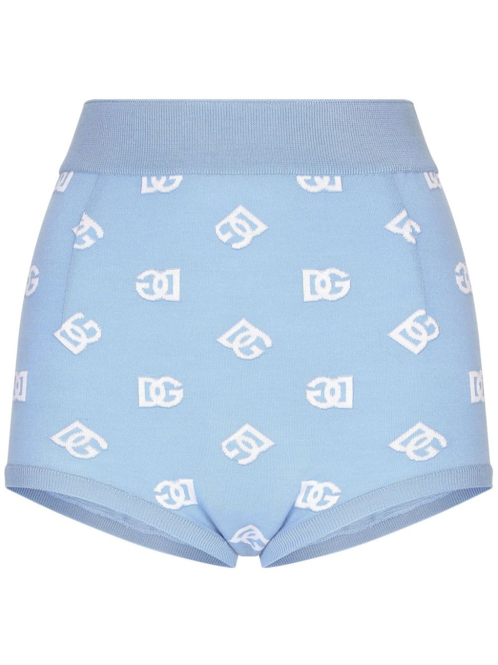 DNA logo-embroidered mini-shorts Highlights - Light blue - Virgin wool-silk blend - Elasticated waistband - All-over logo embroidery - Ribbed waistband - Ribbed hem Made in Italy Composition Virgin Wool 91%, Silk 9%
