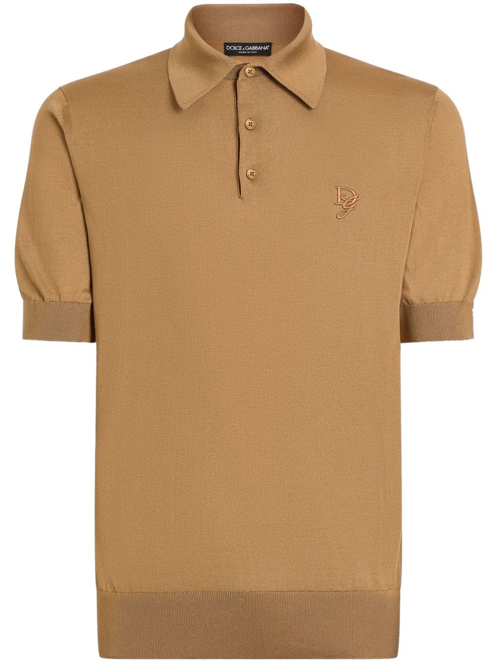 logo-embroidered polo shirt Highlights - Beige Made in Italy Composition Silk 100%