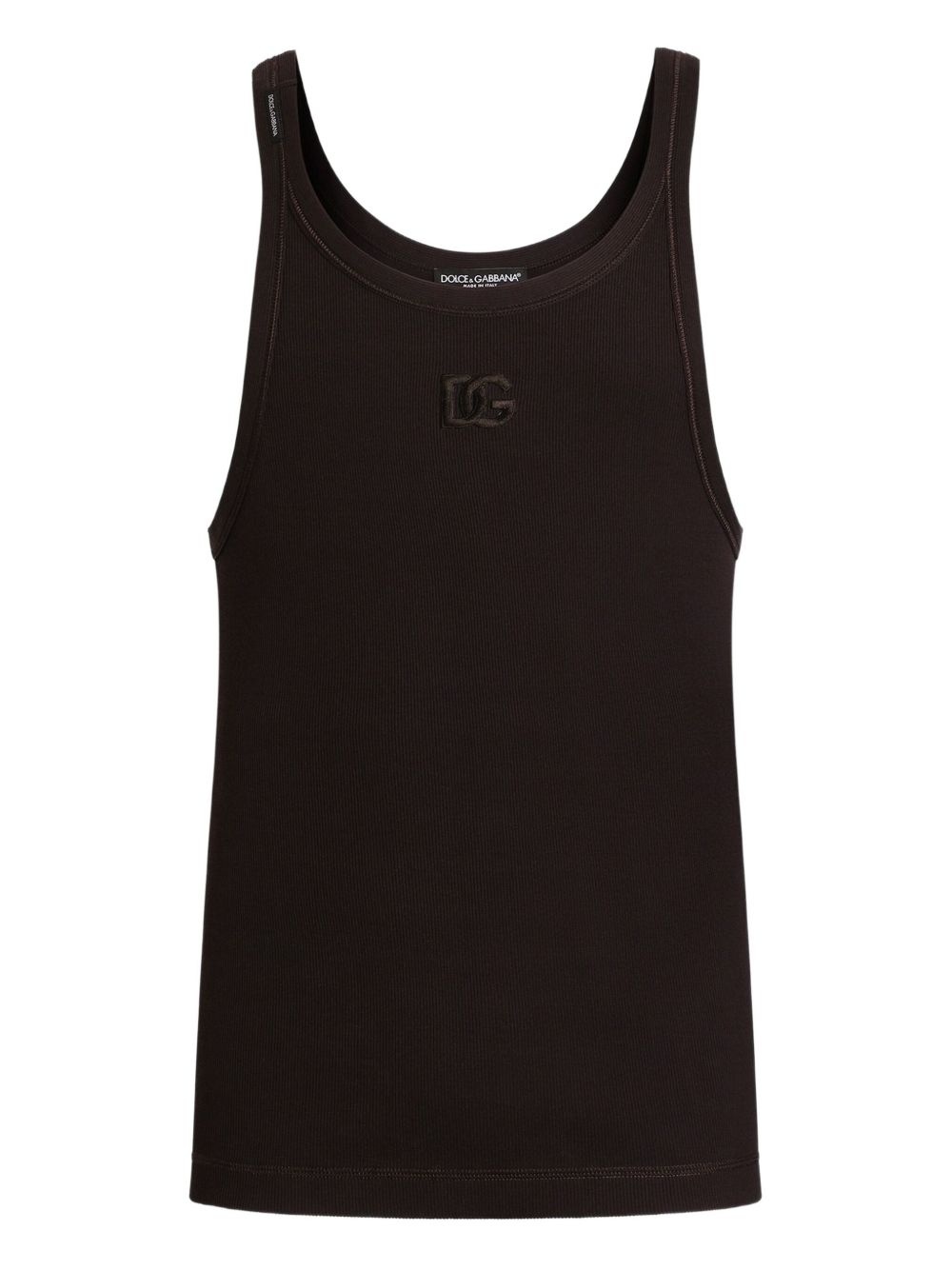 logo-embroidered ribbed tank top Highlights - Brown - Ribbed texture - Round neck - Sleeveless - Embroidered logo Made in Italy Composition Cotton 100%