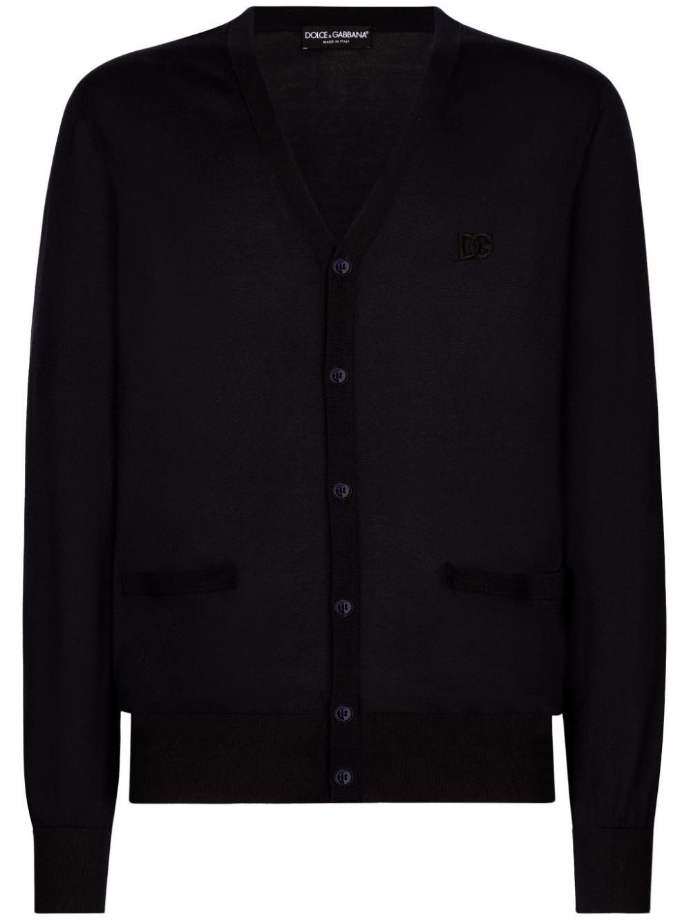 logo-embroidered silk cardigan Highlights - Navy blue - Silk - Fine knit - Embroidered logo at the chest - V-neck - Front button fastening - Long sleeves - Straight hem Made in Italy Composition Silk 100%