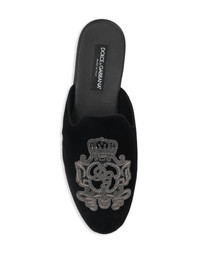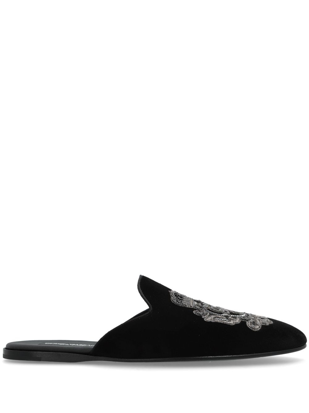 logo-embroidered slippers Highlights - Black - Flat sole - Branded insole - Almond toe Made in Italy Composition Outer: Cotton 100% Sole: Leather 100% Lining: Leather 100%