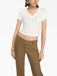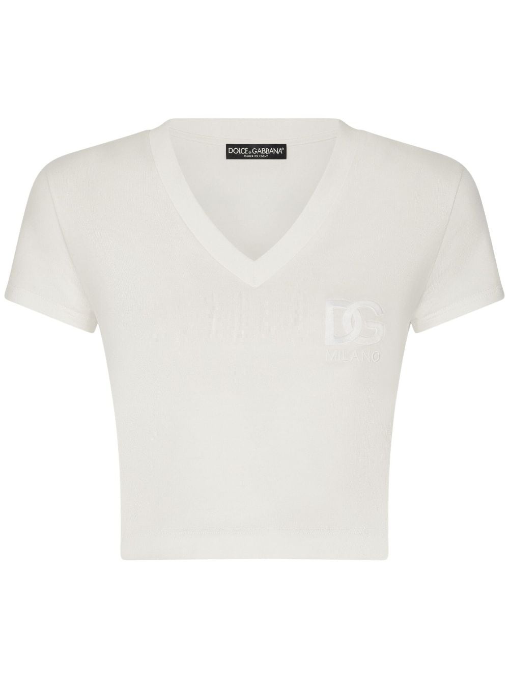 logo-embroidered stretch-cotton T-shirt Highlights - Milk white - Stretch-cotton - Embroidered logo at the chest - V-neck - Short sleeves - Straight hem - Cropped Made in Italy Composition Cotton 93%, Spandex/Elastane 7%