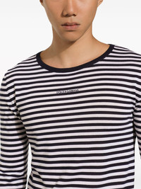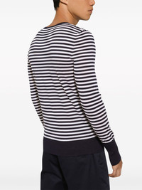 logo-embroidered striped jumper Highlights - White/navy blue - Virgin wool - Knitted construction - Horizontal stripe pattern - Embroidered logo to the front - Crew neck - Long sleeves - Ribbed cuffs and hem Made in Italy Composition Virgin Wool 100% Washing instructions Read Manufacturer Guidelines
