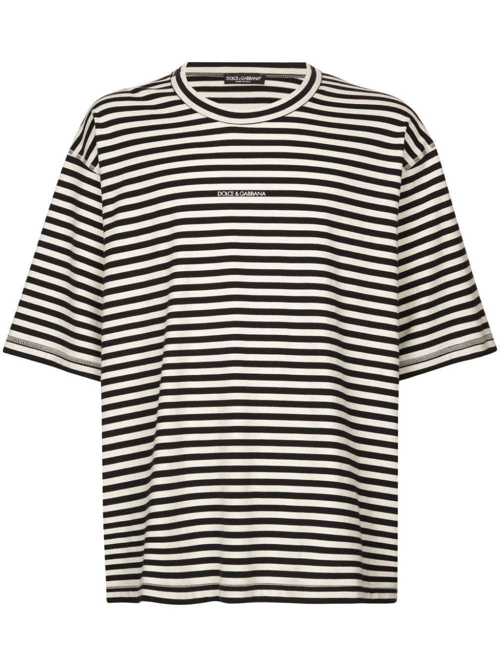 logo-embroidered striped T-shirt Highlights - Black/cream white - Cotton - Jersey texture - Horizontal stripe pattern - Embroidered logo to the front - Crew neck - Drop shoulder - Short sleeves - Straight hem Made in Italy Composition Cotton 100% Washing instructions Read Manufacturer Guidelines