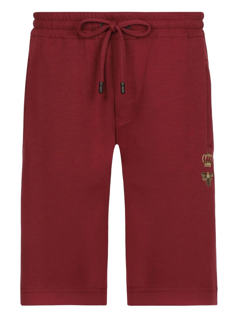 logo-embroidery shorts Highlights - Burgundy - Cotton-blend - Elastic waistband - Front welt pockets Made in Italy Composition Cotton 77%, Polyester 23%