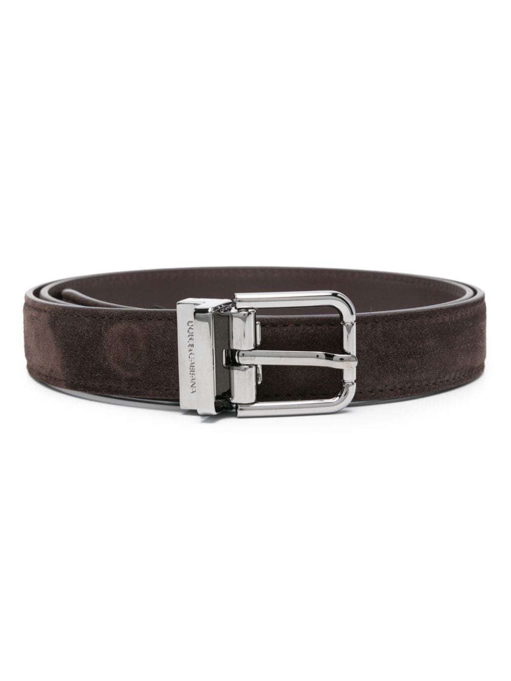 logo-engraved buckle suede belt Highlights - Cedar brown - Suede - Logo-engraved buckle - Gunmetal-tone hardware - Pre-drilled holes - Leather lining - Adjustable fit - Buckle fastening Made in Italy Composition Calf Leather 100% SIZE & FIT Measurement Maximum Length 37.4 in(95 cm) Minimum Length 33.46 in(85 cm) WIDTH 0.98 in(2.5 cm)