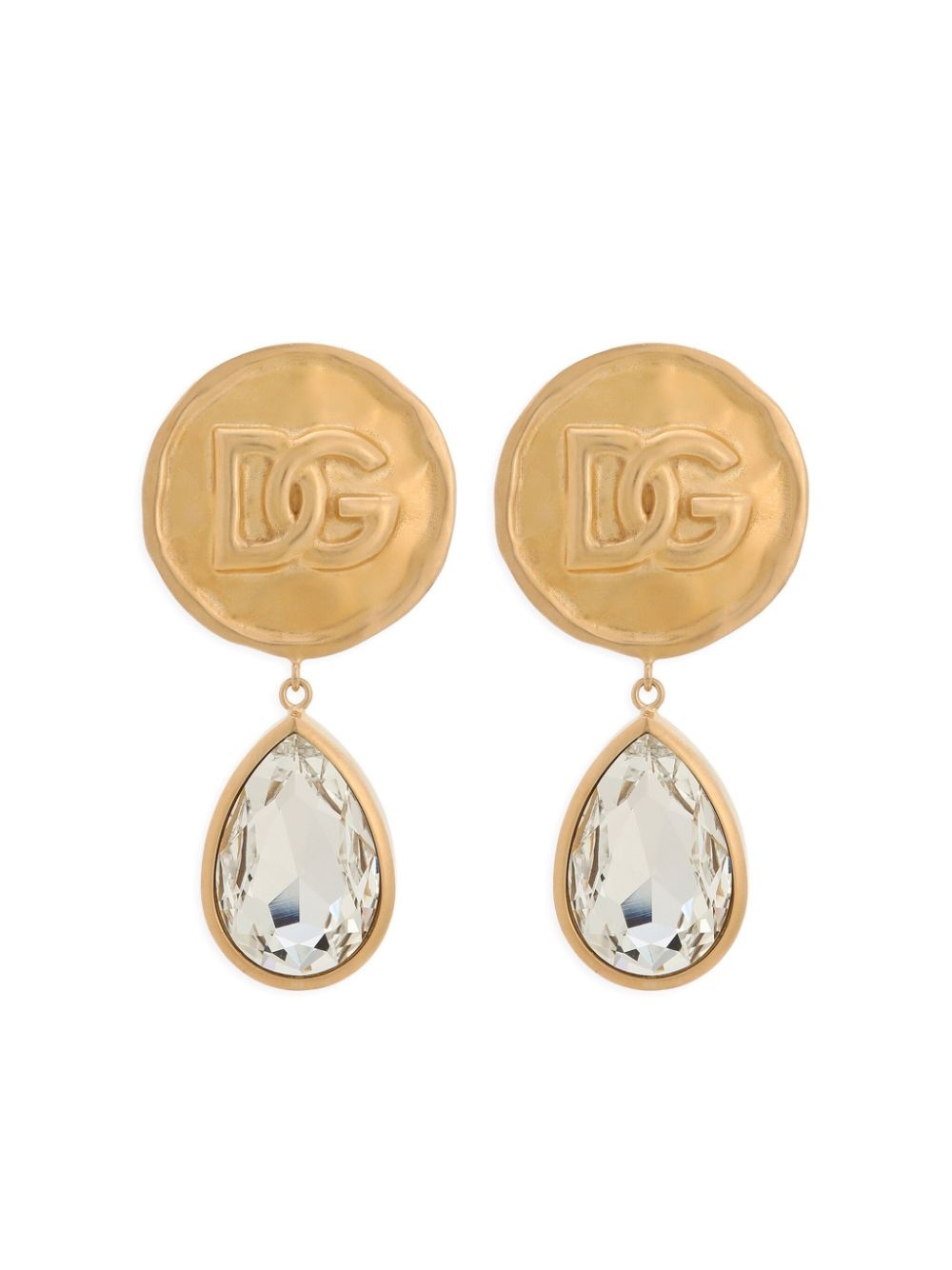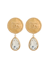 logo-engraved drop earrings Highlights - White - Gold-tone hardware - Crystal embellishment - Engraved logo - Drop design - Clip-on design - Clip fastening - These earrings come as a pair. Made in Italy