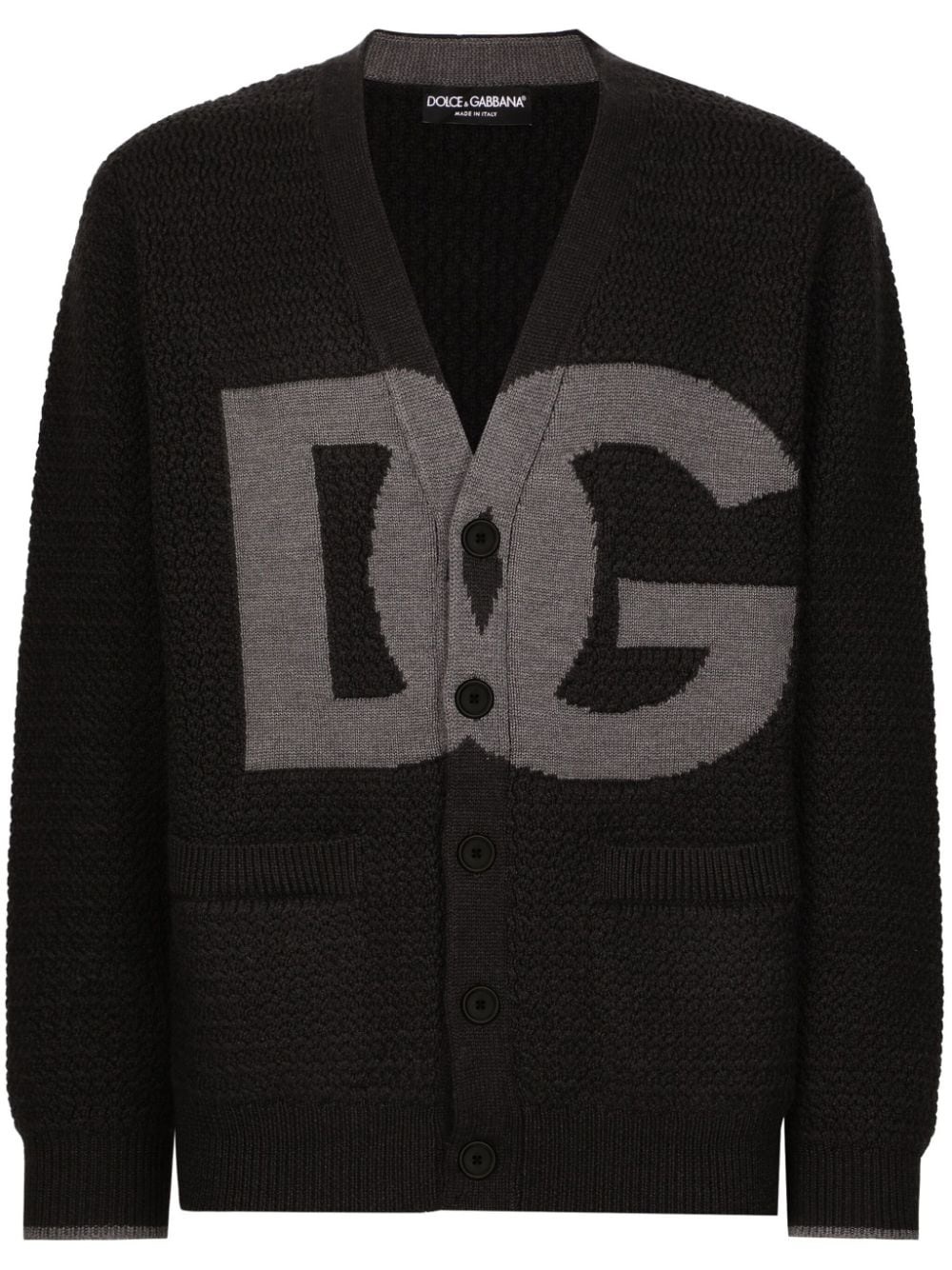 logo-intarsia cardigan Highlights - Dark grey - Virgin wool - Intarsia-knit logo - Fine knit - Front button fastening - V-neck Made in Italy Composition Virgin Wool 100%