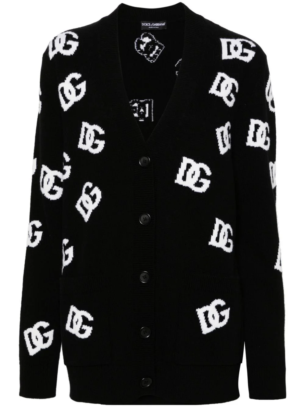 logo-intarsia virgin wool cardigan Channelling its own unique aesthetic, Dolce & Gabbana presents this cashmere cardigan in a two-tone colourway. The piece features two pockets to the front while the all-over intarsia monogram knit results in an unmistakably branded look. Highlights - Black/white - Virgin wool - Dg patterned intarsia knit - Ribbed v-neck - Long sleeves - Ribbed cuffs and hem - Two front patch pockets Made in Italy Composition Virgin Wool 100% SIZE & FIT Measurement SLEEVE LENGTH 26.77 in(68 cm) LENGTH 29.13 in(74 cm) Washing instructions Dry Clean Only