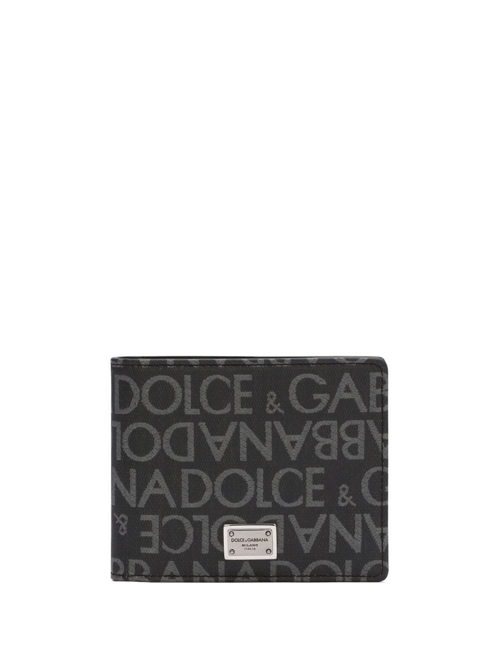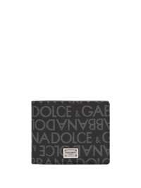 logo-jacquard bi-fold wallet Highlights - Black/grey - Monogram jacquard - Silver-tone logo plaque - Bi-fold design - Coin pocket - Note compartment - Internal card slots Made in Italy Composition Outer: Cotton 47%, Polyurethane 39%, Polyester 14% Inner: Calf Leather 80%, Rayon 20%