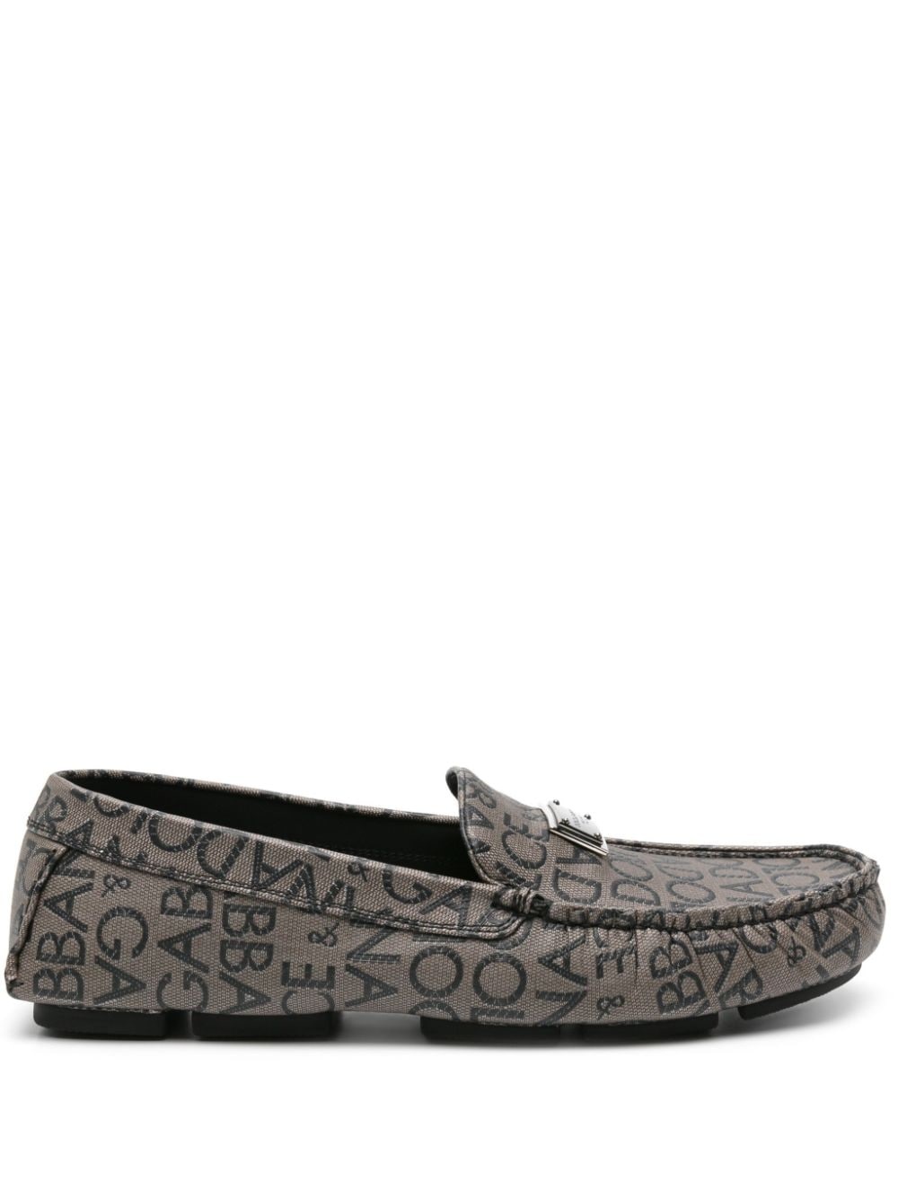 logo-jacquard canvas loafers An unmistable Dolce & Gabbana creation, these loafers are defined by an all-over logo-jacquard motif and embellished with an engraved silver-tone plaque at the front. Highlights - Pepper grey/dark grey - Cotton - Canvas - Jacquard logo motif - Silver-tone logo plaque - Slip-on style - Gathered detailing - Round toe - Leather lining - Branded leather insole - Segmented rubber sole - This piece comes complete with a protective dust bag. Made in Italy Composition Outer: Cotton 100% Sole: Rubber 100% Lining: Calf Leather 100%