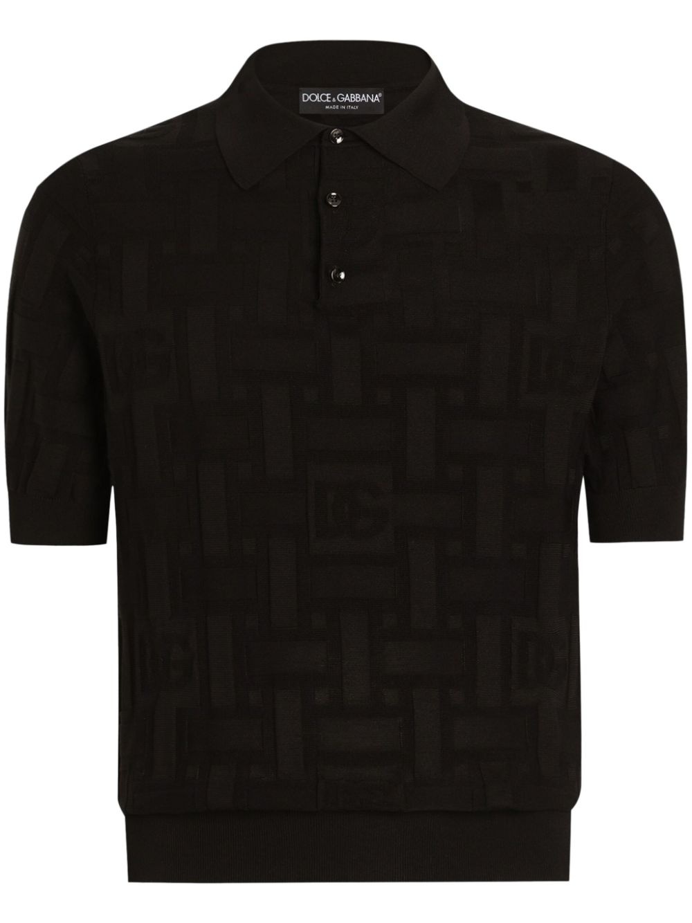 logo-jacquard polo shirt Highlights - Black - Short front button fastening - Ribbed cuffs and hem - Embossed detail - Short sleeves Made in Italy Composition Silk 100%