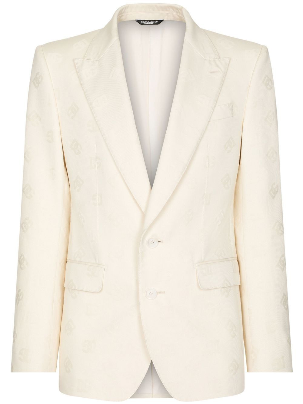 DG-logo jacquard single-breasted blazer Highlights - Cream white - Cotton - Jacquard logo motif - Peak lapels - Front button fastening - Long sleeves - Chest welt pocket - Two front flap pockets Made in Italy Composition Outer: Cotton 100% Lining: Cotton 100% Washing instructions Read Manufacturer Guidelines