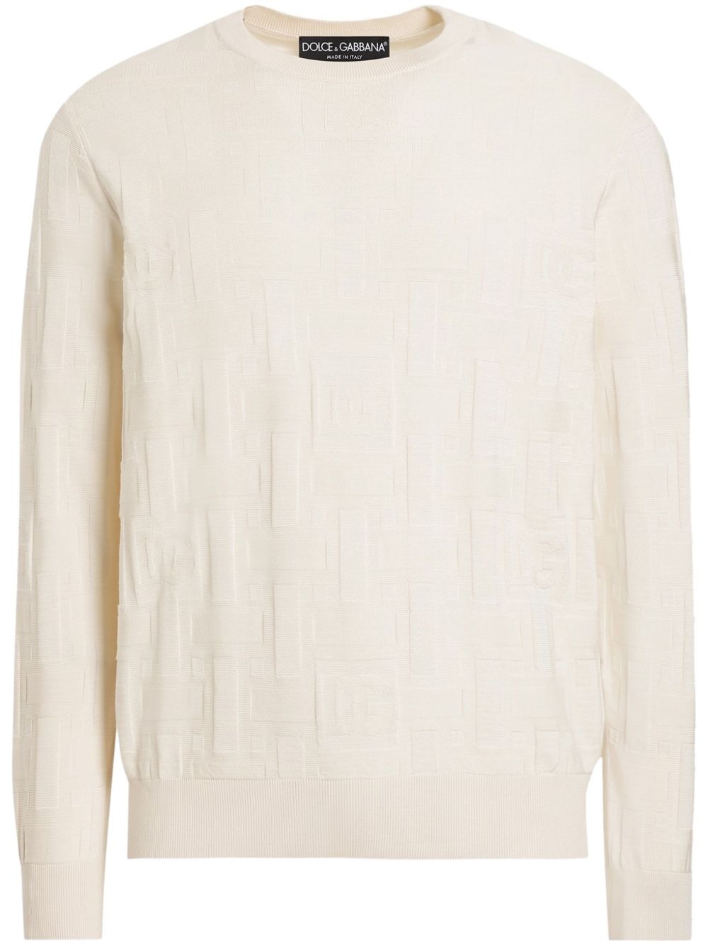 logo-jacquard sweatshirt Highlights - White - Ribbed cuffs and hem - Embossed detail - Crew neck Made in Italy Composition Silk 100%