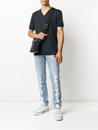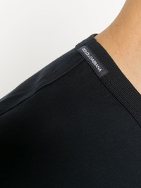 logo label V-neck T-shirt This isn't just any old T-shirt. Oh no, this is a logo label V-neck T-shirt from Dolce & Gabbana. You know what that means.. Highlights - Dark blue - Cotton - Logo label - V-neck - Short sleeves - Straight hem - Relaxed fit Made in Italy Composition Cotton 100% SIZE & FIT Model measurements Height 6 ft 1 in(1.85 m) Bust/Chest 35.82 in(91 cm) Hips 37.79 in(96 cm) Waist 29.13 in(74 cm) Washing instructions Machine Wash