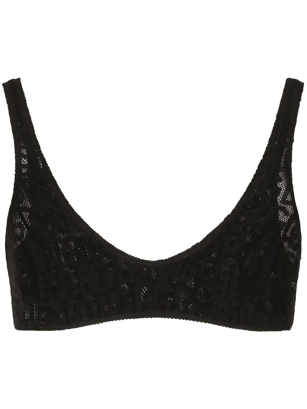 DG-logo jacquard tulle bralette Highlights - Jet black - Cotton blend - Monogram pattern - Lace trim - Scoop neck - Scoop back - Thin shoulder straps - Cropped - Bralette style Made in Italy Composition Cotton 56%, Nylon 38%, Spandex/Elastane 6%