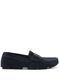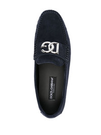 logo-lettering loafers Crafted from supple calf suede in Italy, these loafers from Dolce & Gabbana are rendered in a midnight blue hue that serves as a background for a polished silver-tone DG plaque. Highlights - Midnight blue - Calf suede - Almond toe - Whipstitch trim - Silver-tone logo lettering - Branded leather insole - Leather lining - Rubber lug sole - Slip-on style Made in Italy Composition Outer: Calf Suede 100% Lining: Calf Leather 100% Sole: Rubber 100% SIZE & FIT Measurement HEEL 0.98 in(2.5 cm) Sole height 0.98 in(2.5 cm)
