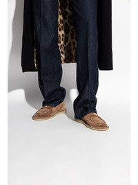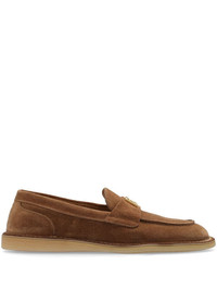 logo-lettering loafers Highlights - Caramel brown - Calf suede - Shearling lining - Gold-tone logo lettering - Apron toe - Round toe - Branded leather insole - Flat rubber sole Made in Italy Composition Suede 100% SIZE & FIT Measurement HEEL 0.78 in(2 cm) Sole height 0.39 in(1 cm)
