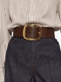 logo-lettering logo leather belt Highlights - Brown - Calf leather - Big gold-tone rectangular buckle - Wide Made in Italy Composition Calf Leather 100% SIZE & FIT Measurement WIDTH 2.36 in(6 cm)