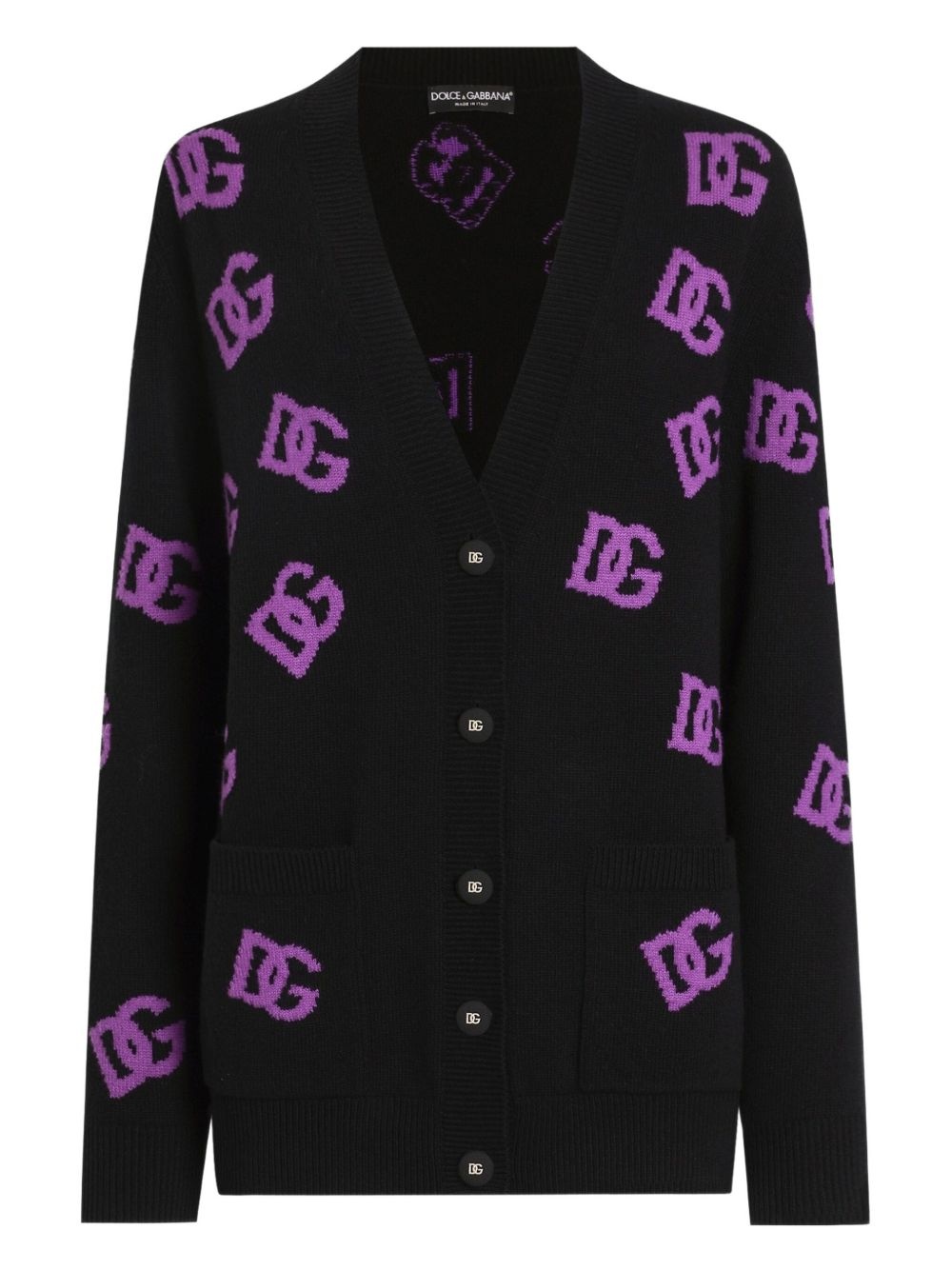 DNA logo-motif cardigan Highlights - Black - Front button placket - Two front patch pockets - Ribbed trim - Logo-engraved buttons Made in Italy Composition Virgin Wool 100% Washing instructions Read Manufacturer Guidelines