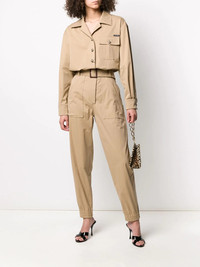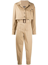 logo patch belted boiler suit Show off your style credentials, with Dolce & Gabbana. A laid-back shape, and utility feel, give this piece an effortlessly cool look. And isn't it nice not to have to match multiple separates together? Featuring a collar style, a front button fastening, a front logo patch, flap and button pockets, long sleeves, side pockets, button cuffs, a long length and elasticated ankles. Made in Italy Composition Cotton 97%, Goat Skin 60%, Zamak 35%, Polyester 5%, Spandex/Elastane 3% SIZE & FIT Model measurements Height 5 ft 10 in(1.79 m) Bust/Chest 31.88 in(81 cm) Hips 35.43 in(90 cm) Waist 23.62 in(60 cm) FittingInformation This piece fits true to size. We recommend you get your regular size Designed for a loose fit with a close fit at the waist Made with a mid-weight stretch fabric Washing instructions Dry Clean Only