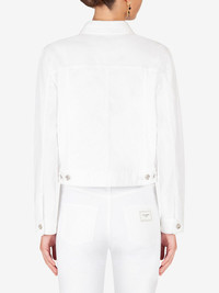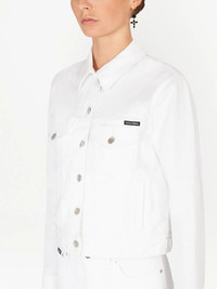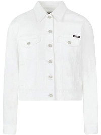 logo-applique denim jacket A little layer with a big impact. In a crisp white hue and a stretch-cotton construction, this jacket from Dolce & Gabbana is here to keep you feeling fresh and looking good. What's not to love? Highlights - White - Stretch-cotton - Logo patch to the front - Spread collar - Front button fastening - Front flap pockets - Slip pockets to the sides - Long sleeves Made in Italy Composition Cotton 196%, Elastane 4%
