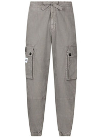 logo-patch cotton cargo trousers Highlights - Light grey - Cotton - Two side cargo pockets - Logo patch to the side - Elasticated drawstring waistband - Two rear zip-fastening pockets - Ribbed cuffs Made in Italy Composition Cotton 100%