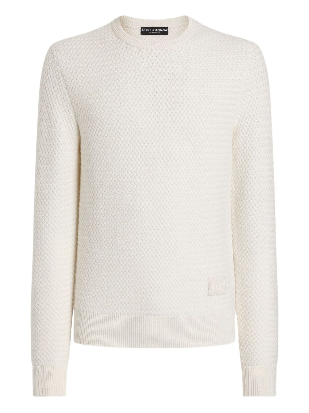 logo-patch crew-neck sweater Highlights - White - Crew neck - Long sleeves - Straight hem - Logo patch Made in Italy Composition Virgin Wool 100% Washing instructions Read Manufacturer Guidelines