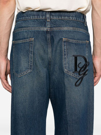 logo-patch jeans Highlights - Indigo blue - Front button and zip fastening - Belt loops - Classic five pockets Made in Italy Composition Cotton 100%, Polyester 100% SIZE & FIT Model measurements Height 6 ft 2 in(1.88 m) Bust/Chest 37.4 in(95 cm) Hips 38.58 in(98 cm) Waist 31.1 in(79 cm) FittingInformation Designed with a wide leg, these jeans offer a loose and roomy fit Sturdy and hard-wearing, this denim piece offers no stretch