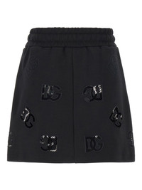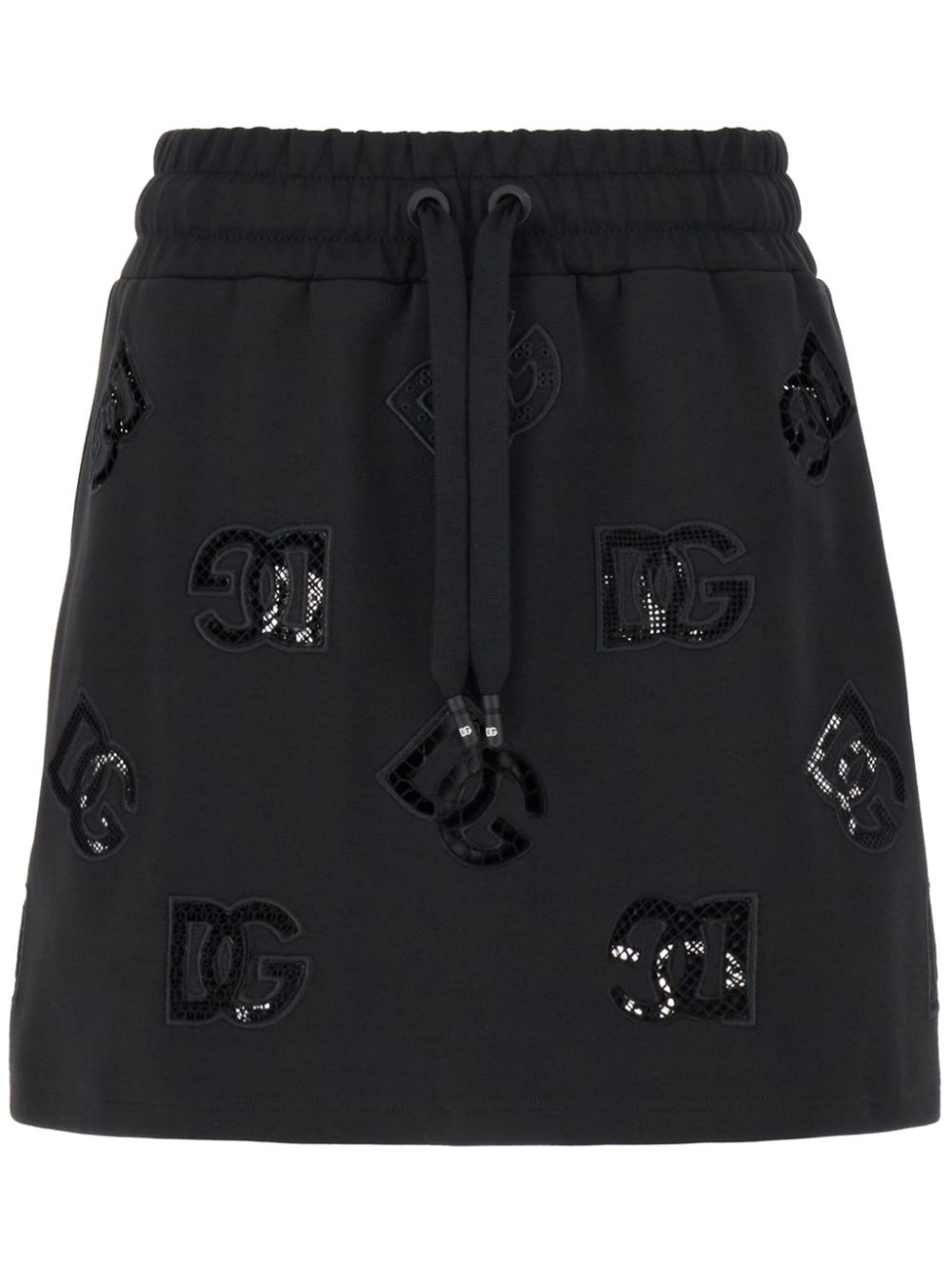 logo-patch jersey mini skirt Highlights - Black - Cotton blend - Jersey texture - Drawstring fastening - Elasticated waistband - Logo patch to the front - Straight hem - Thigh-length Made in Italy Composition Cotton 68%, Polyester 32%
