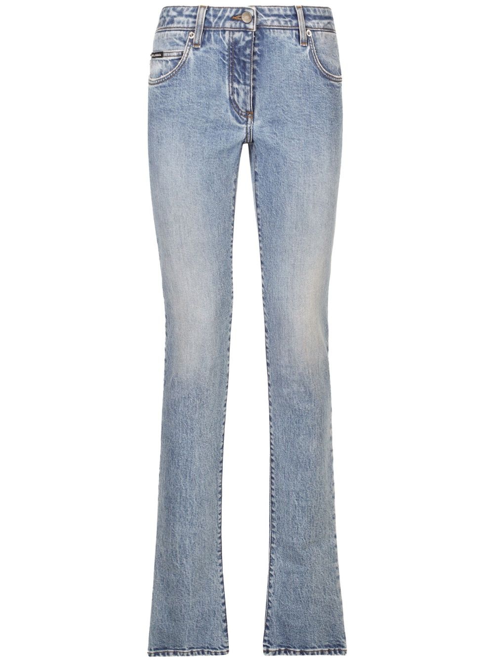 logo-patch low-rise bootcut jeans Highlights - Light blue - Stretch-cotton - Stonewashed - Logo patch to the side - Logo plaque - Low-rise - Bootcut - Concealed fly and button fastening - Classic five pockets - Straight hem Made in Italy Composition Cotton 98%, Elastane 2% Washing instructions Read Manufacturer Guidelines