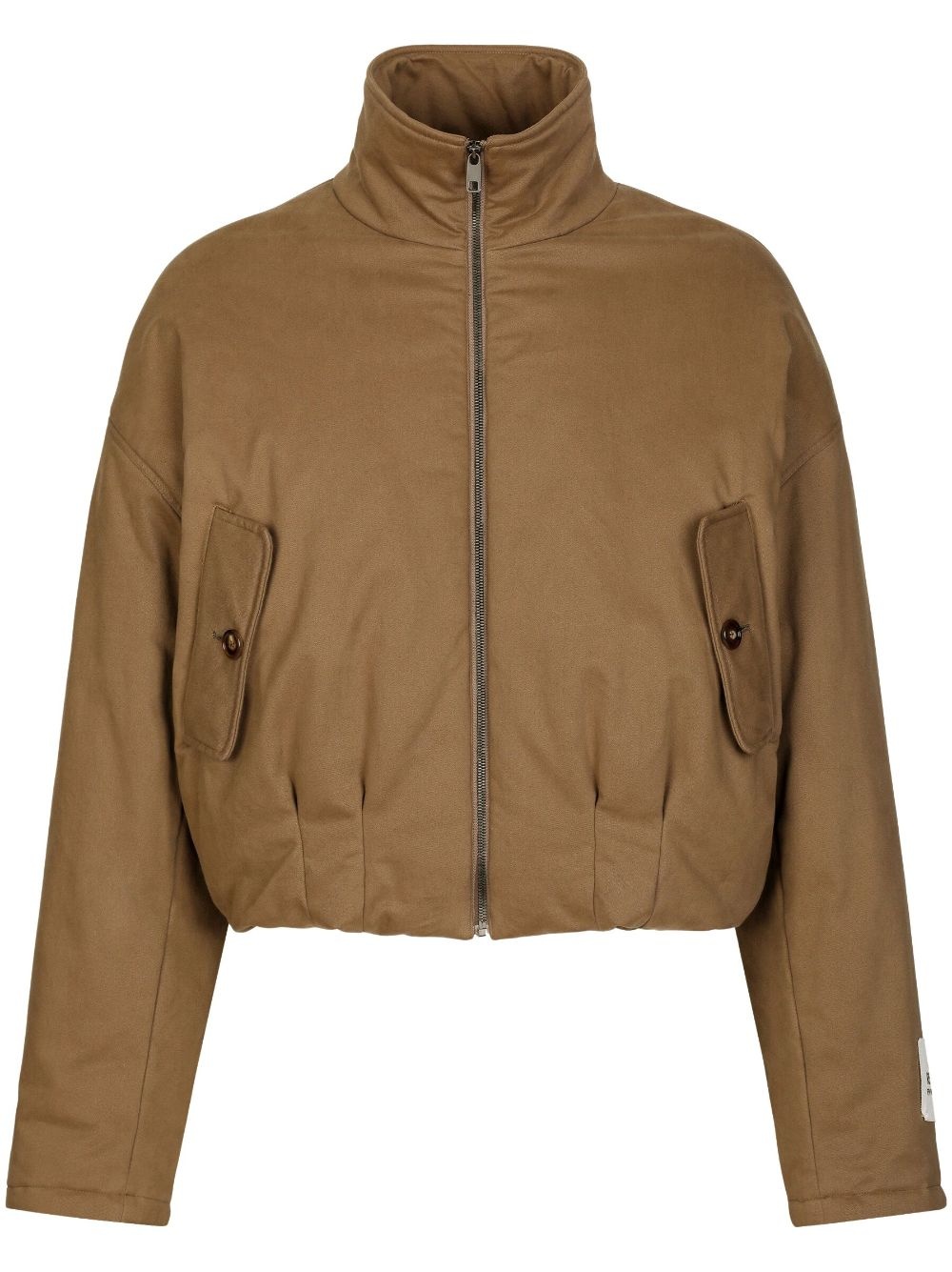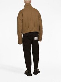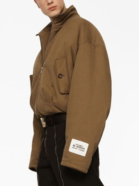 logo-patch padded jacket This long-sleeved jacket by Italian brand Dolce & Gabanna takes a relaxed approach with its padded silhouette in a tonal brown hue. Features include a stand-up collar and contrasting logo patch on the sleeve for a branded touch. Highlights - Chestnut brown - Cotton blend - Padded design - Stand-up collar - Front zip fastening - Two front flap pockets - Long sleeves - Logo patch at the sleeve - Straight hem Made in Italy Composition Lining: Cotton 75%, Polyester 25% Outer: Cotton 98%, Elastane 2% Washing instructions Read Manufacturer Guidelines