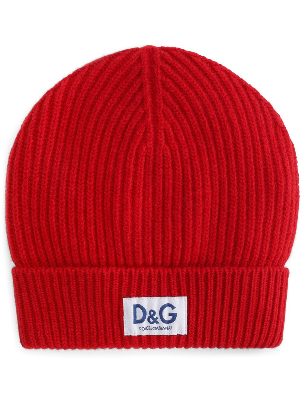 logo-patch ribbed-knit beanie Red alert! When cold days hit, you'll want Dolce & Gabbana's fine-ribbed beanie to keep you nice and warm. Roll on winter. Made in Italy Composition Outer: Virgin Wool 100%