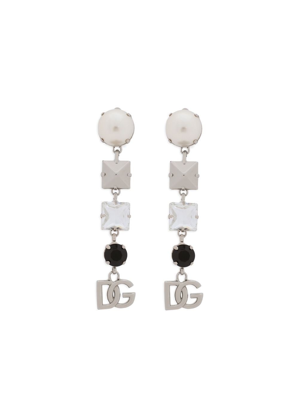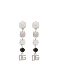 logo pendant earrings silver-tone crystal embellishment silver-tone stud embellishment logo charm Made in Italy