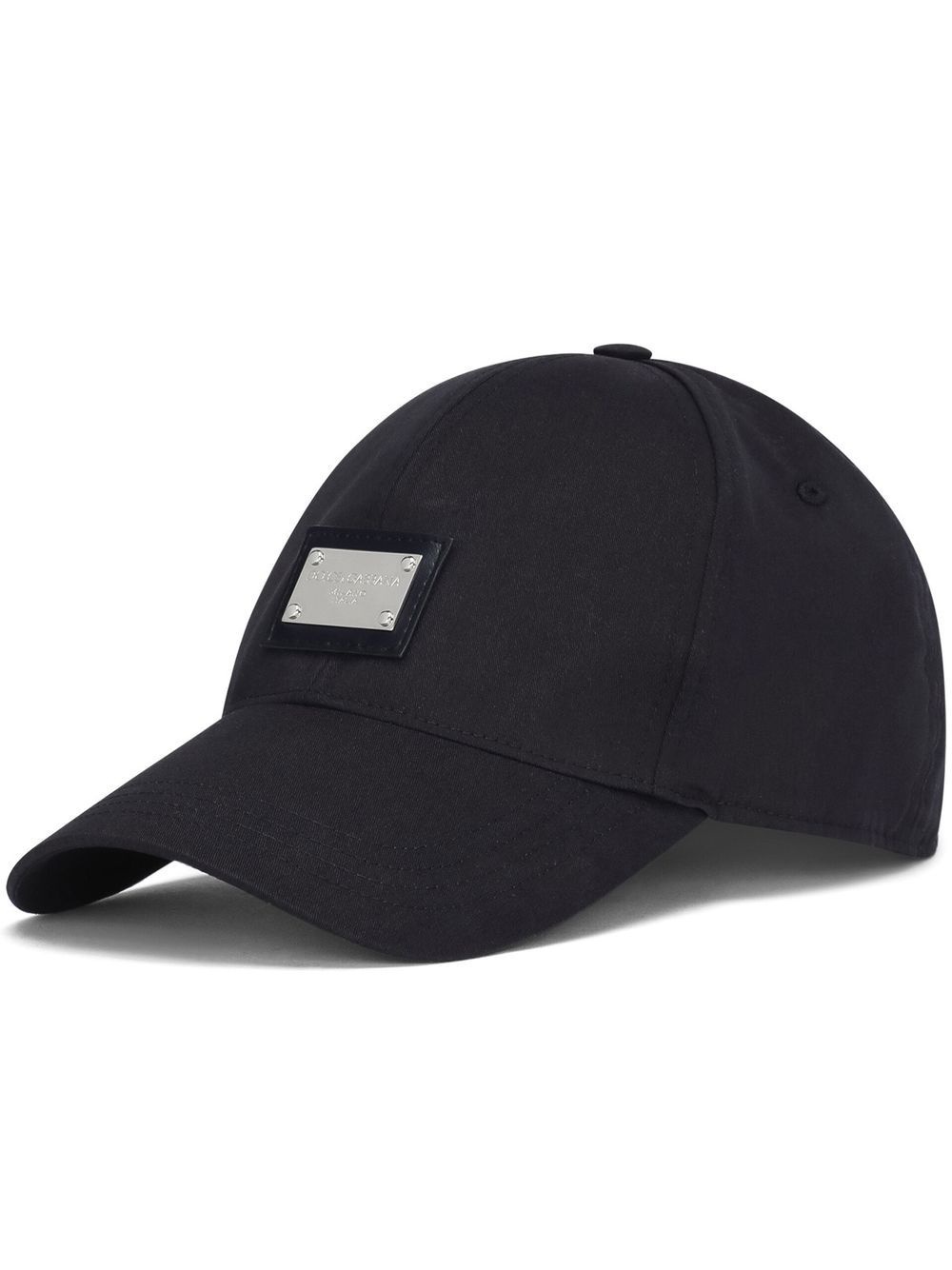 logo-tag baseball cap Crafted from an all-black cotton blend, this baseball cap from Dolce & Gabbana is given an instantly recognisable look. The silver-tone branded plaque to the front stands out for a statement finish. Highlights - Black - Stretch-cotton - Silver-tone logo plaque - Five-panel construction - Curved peak - Adjustable strap to the rear Made in Italy Composition Rayon 100%, Cotton 97%, Elastane 3% SIZE & FIT Measurement CIRCUMFERENCE 22.83 in(58 cm) BRIM 2.75 in(7 cm) Washing instructions Read Manufacturer Guidelines