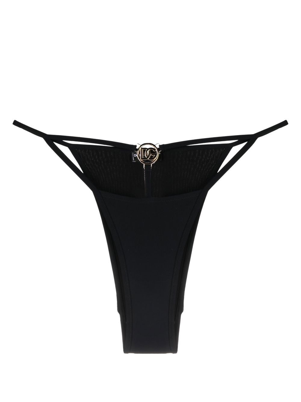 DG-logo cut-out bikini bottoms Highlights - Black - Gold-tone logo plaque - Stretch-design - Mid-rise - Thong style - Be mindful to try on swimwear over your own garments. Made in Italy Composition Outer: Polyamide 75%, Spandex/Elastane 25% Lining: Polyamide 80%, Spandex/Elastane 20% Washing instructions Hand Wash