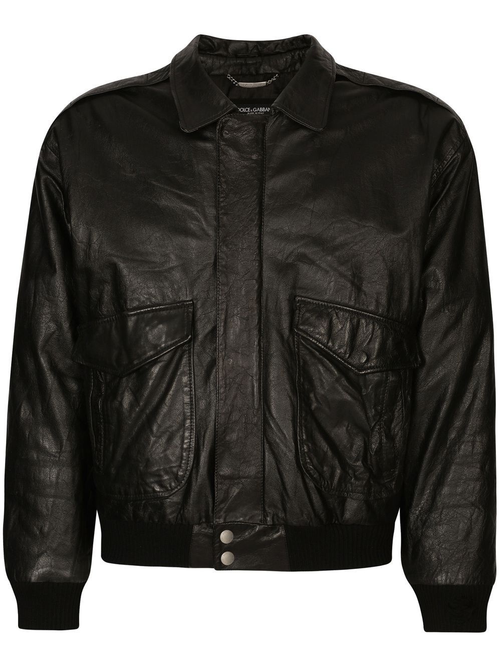 logo-tag leather jacket Highlights - Black - Lambskin - Logo plaque - Two front flap pockets - Front press-stud and zip fastening - Classic collar - Long sleeves - Ribbed cuffs - Ribbed hem Made in Italy Composition Lambskin 100%, Rayon 100%