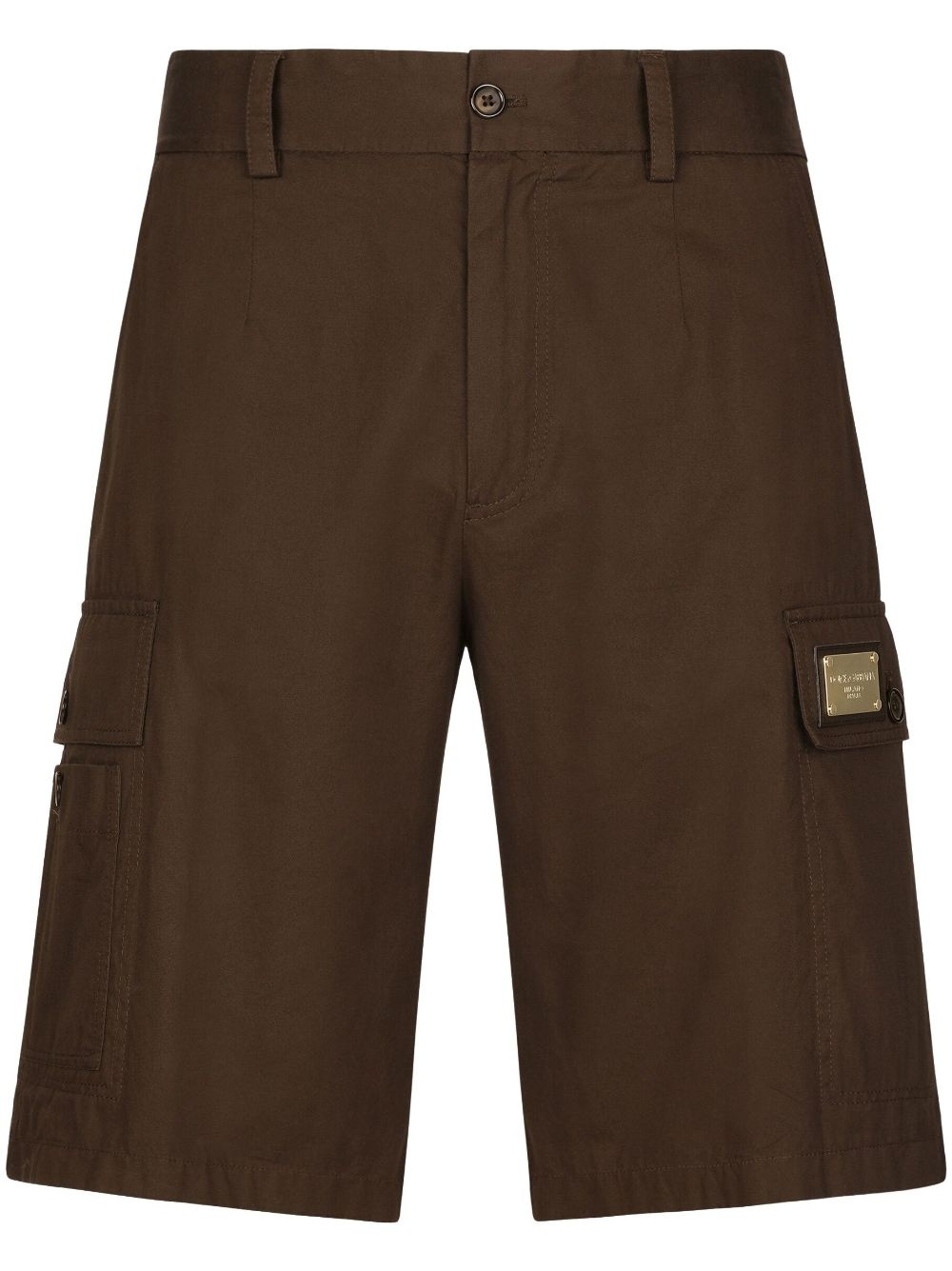logo-plaque cargo shorts Highlights - Brown - Cotton - Gold-tone logo plaque - Concealed fly and button fastening - Two side slit pockets - Two side cargo pockets - Belt loops - Straight leg - Knee-length Made in Italy Composition Cotton 100%