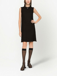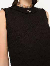 DNA DG-logo tweed midi dress Dolce & Gabbana presents this black dress for their SS23 collection. In a classic black hue, the sleeveless style showcases a crew neck and a DG logo plaque at the front. Highlights - Black - Wool blend - Gold-tone logo plaque - Crew neck - Sleeveless - Frayed edge - Straight hem - Concealed rear zip fastening Made in Italy Composition Lining: Polyester 97%, Elastane 3% Outer: Wool 93%, Nylon 7% SIZE & FIT Measurement LENGTH 38.18 in(97 cm) FittingInformation Designed for a slim fit that sits just away from the body offering a close yet comfortable fit Made from a midweight non-stretch fabric This piece fits true to size – take your usual size