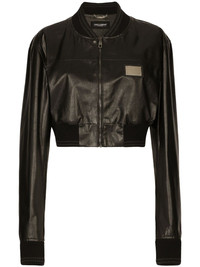 logo-plaque cropped leather jacket