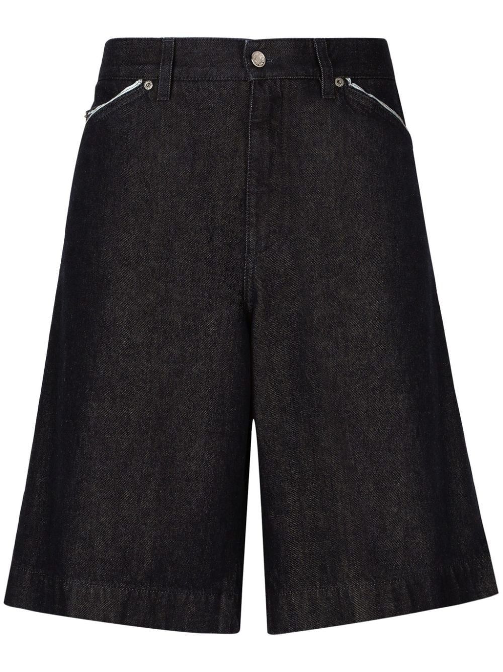 logo-plaque denim bermuda shorts Highlights - Black - Cotton - Denim - Logo plaque - Side stripe detailing - Belt loops - Front button and zip fastening - Wide leg - Two side inset pockets - Two rear patch pockets Made in Italy Composition Cotton 100% Washing instructions Read Manufacturer Guidelines