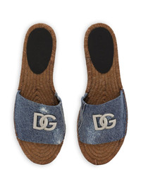 Embellished denim espadrille slides