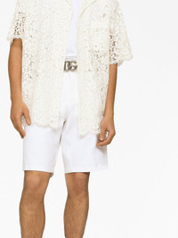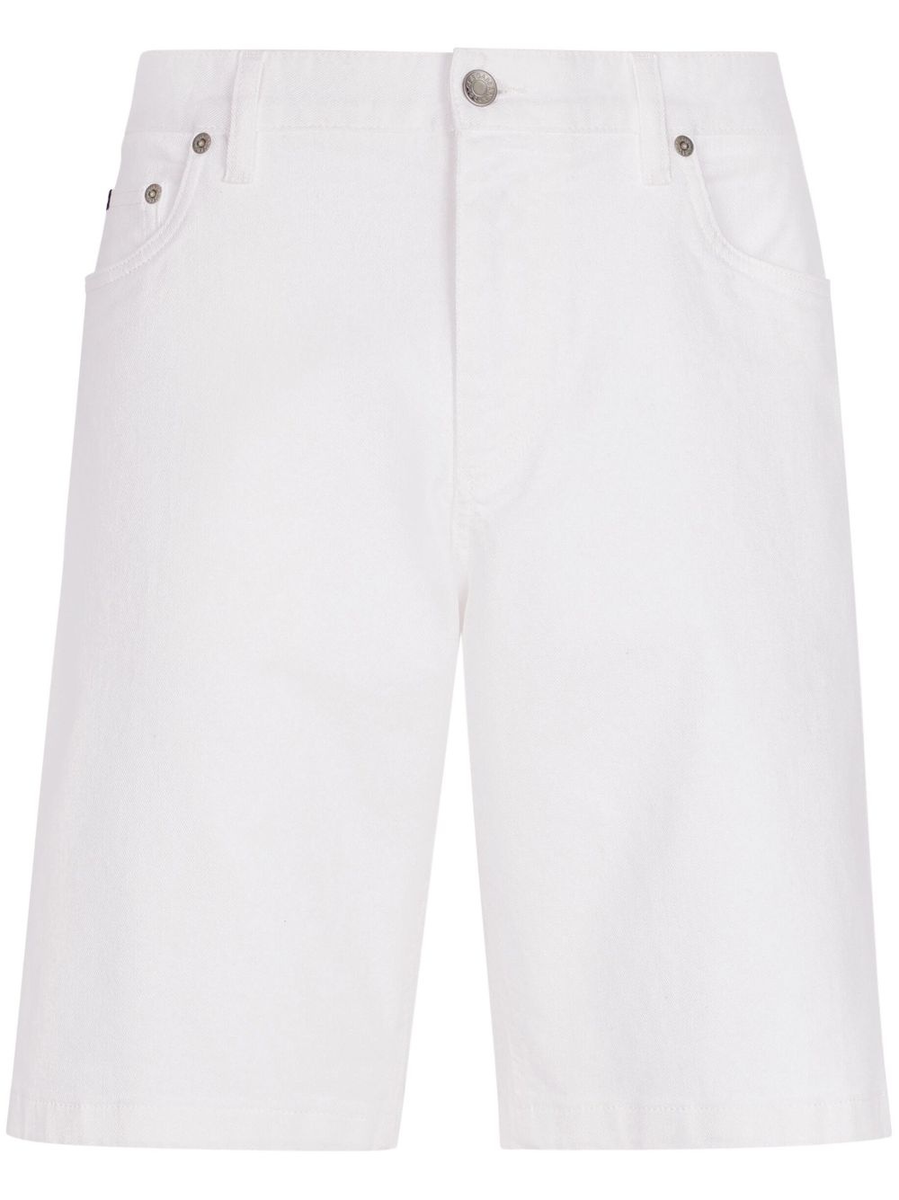 logo-plaque denim shorts Crafted from stretch cotton denim, these shorts from Dolce & Gabbana's AW23 boast a classic straight-leg silhouette, which is presented in an all-white colourway with a silver-hued metal plaque at the pocket. Highlights - White - Stretch-cotton - Washed denim - Silver-tone logo plaque - Belt loops - Front button and zip fastening - Classic five pockets - Above-knee length Made in Italy Composition Cotton 98%, Spandex/Elastane 2%