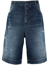 logo-plaque denim shorts Highlights - Blue - Cotton - Denim - Contrast stitching - Belt loops - Classic five pockets - Ripped detailing - Silver-tone logo plaque to the rear - Knee-length - Concealed fly and button fastening Made in Italy Composition Cotton 100% SIZE & FIT Model measurements Height 6 ft 2 in(1.87 m) Bust/Chest 38.18 in(97 cm) Hips 36.61 in(93 cm) Waist 29.13 in(74 cm) Washing instructions Machine Wash