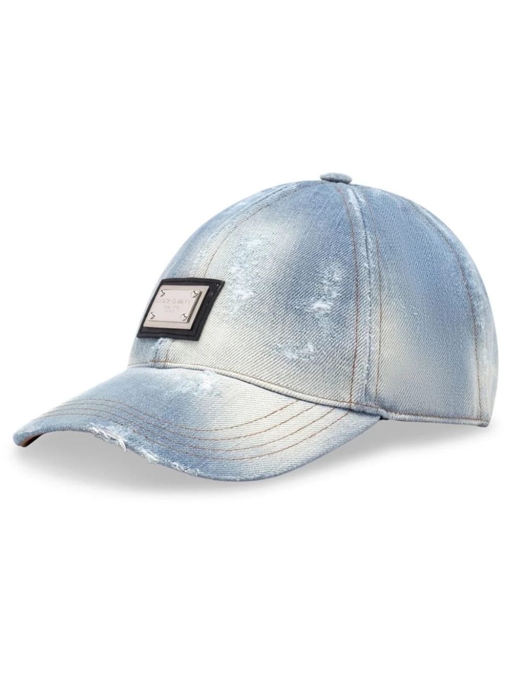 logo-plaque distressed baseball cap Highlights - Light blue/beige - Cotton - Logo plaque - Distressed effect - Washed - Contrast stitching - Six-panel construction - Curved peak - Adjustable strap to the rear Imported Composition Cotton 90%, Lamb Skin 10%