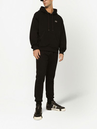 logo-tag drawstring hoodie Adding its penchant for logomania to casual sportswear-inspired silhouettes, Dolce & Gabbana adds a silver-tone logo plaque to this relaxed-fit hoodie spun from soft cotton in Italy. Highlights - Black - Cotton - Jersey knit - Drawstring hood - Logo plaque - Front pouch pocket Made in Italy Composition Cotton 100% SIZE & FIT FittingInformation Designed for a relaxed fit, this piece allows for comfort and movement when worn Made from a midweight non-stretch fabric, this piece offers minimal elasticity when worn This piece fits true to size – take your usual size Washing instructions Read Manufacturer Guidelines