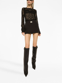 logo-plaque high-waisted miniskirt Highlights - Black - High waist - Logo-engraved silver-tone hardware - Straight hem - Thigh-length Made in Italy Composition Lining: Polyester 62%, Nylon 35%, Elastane 3% Outer: Rayon 100% SIZE & FIT Measurement HIPS 40.94 in(104 cm) LENGTH 14.56 in(37 cm) WAIST 33.46 in(85 cm) Washing instructions Read Manufacturer Guidelines